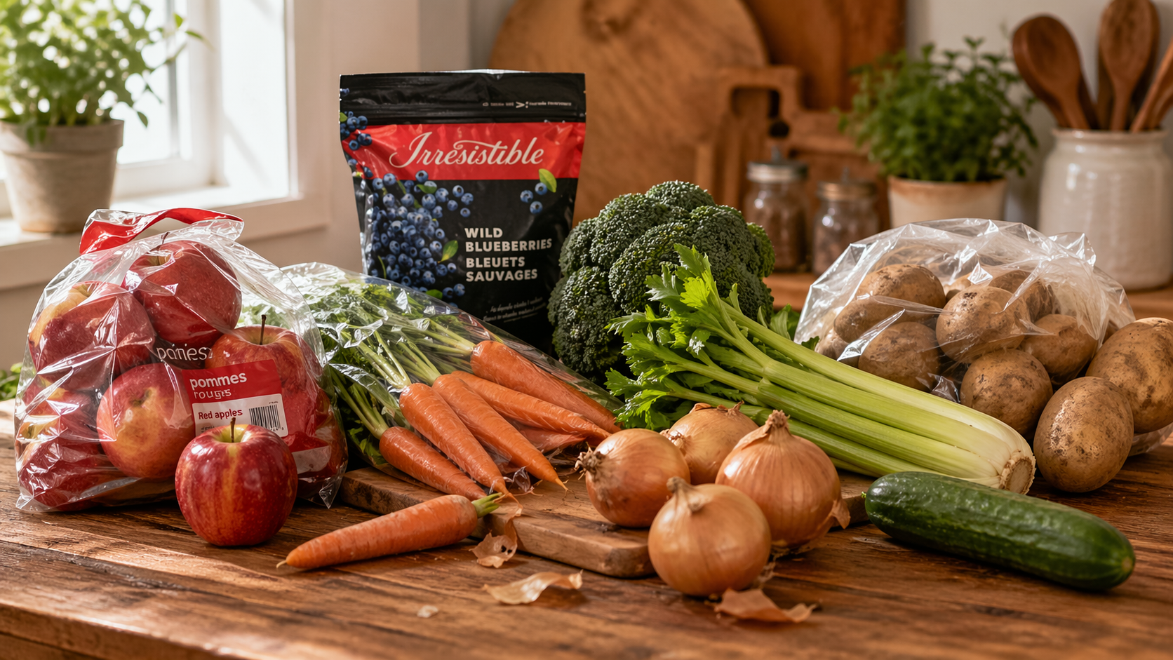 Quand les fruits et légumes frais touchent leur vrai prix plancher, pense utilisation rapide, cuisson ou transformation. Les bananes peuvent finir en muffins ou smoothies, les pommes en compote, les carottes et oignons en soupe ou base de sauce. Pour les patates, oignons et carottes, un plus gros format peut être très rentable si tu le passes vraiment. Les fruits et légumes surgelés, eux, sont parfaits pour acheter d’avance. Un bon prix végétal bien utilisé, c’est moins de gaspillage et plus de souplesse dans la semaine.