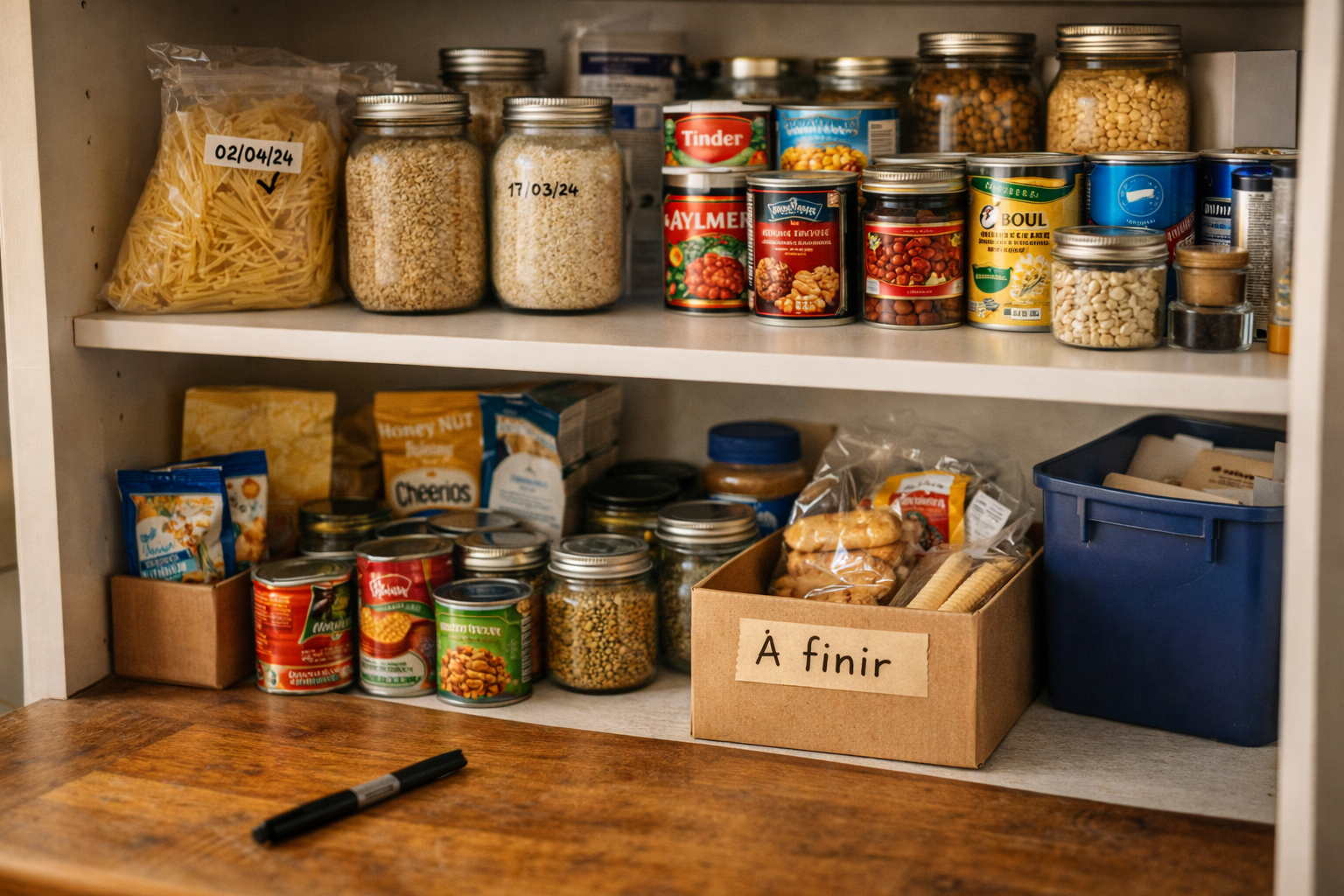 Tu n’as pas besoin d’un garde-manger d’influenceuse. Tu as besoin d’un garde-manger lisible. C’est ça, la vraie différence. Quand tu vois clairement ton stock, tu cuisines mieux. Quand tu cuisines mieux, tu jettes moins. Quand tu jettes moins, ton argent travaille davantage pour toi.