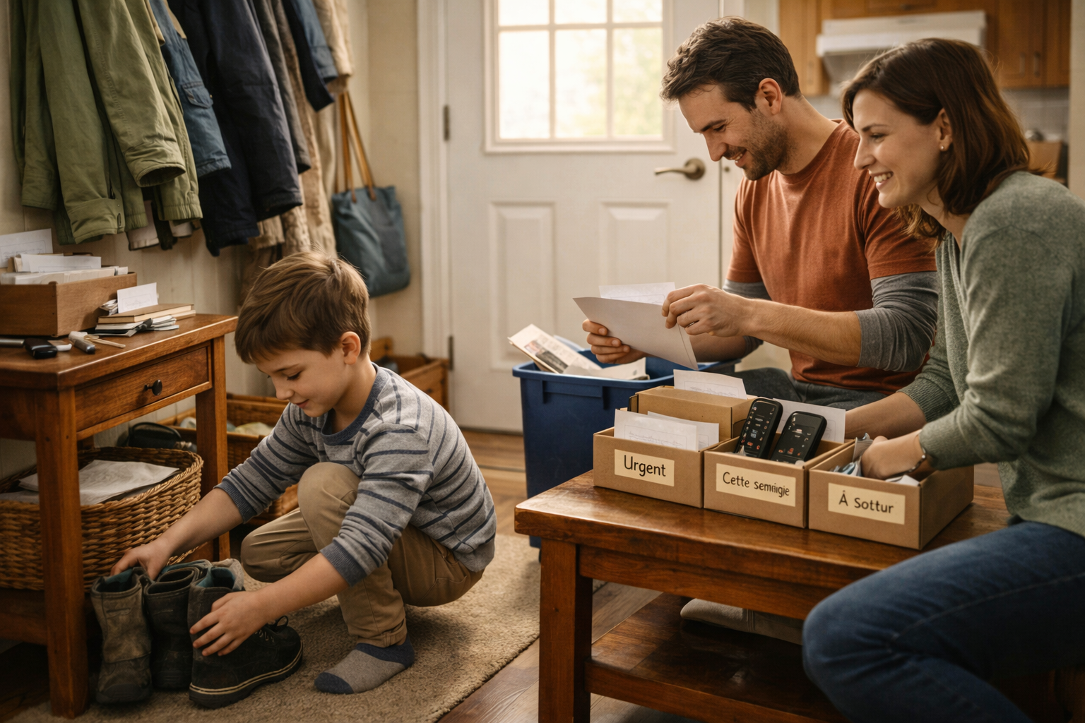 Dans beaucoup de maisons, l’organisation repose presque entièrement sur une seule personne. Une seule voit le désordre. Une seule pense aux systèmes. Une seule ramasse, trie, rappelle, replace, recommence. À la longue, ce n’est pas juste fatigant. C’est profondément décourageant. Une maison qui dépend toujours du même cerveau pour tenir debout finit par épuiser ce cerveau-là.