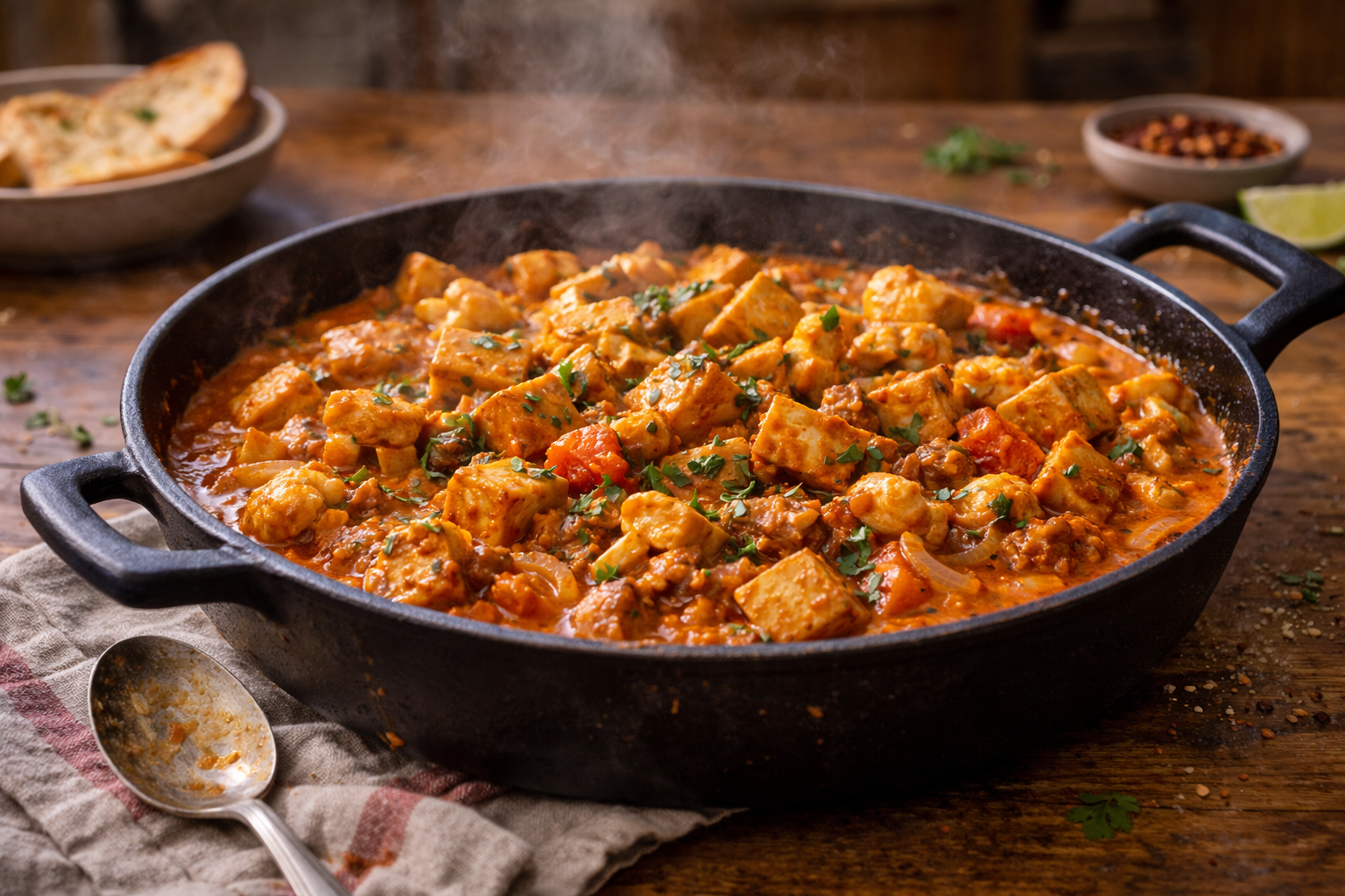 Le tofu a longtemps été jugé un peu injustement, comme s’il était condamné à être triste, mou ou beige pour l’éternité. Pourtant, quand on le cuisine avec un peu de respect et deux ou trois bons réflexes, il devient l’un des meilleurs alliés du budget serré. Cette version Frugalo du tofu au beurre le prouve très bien: une sauce onctueuse, des épices chaleureuses, une texture douce, puis un résultat qui donne l’impression d’avoir commandé un petit plat de resto sans payer le prix qui vient d’habitude avec l’expérience.