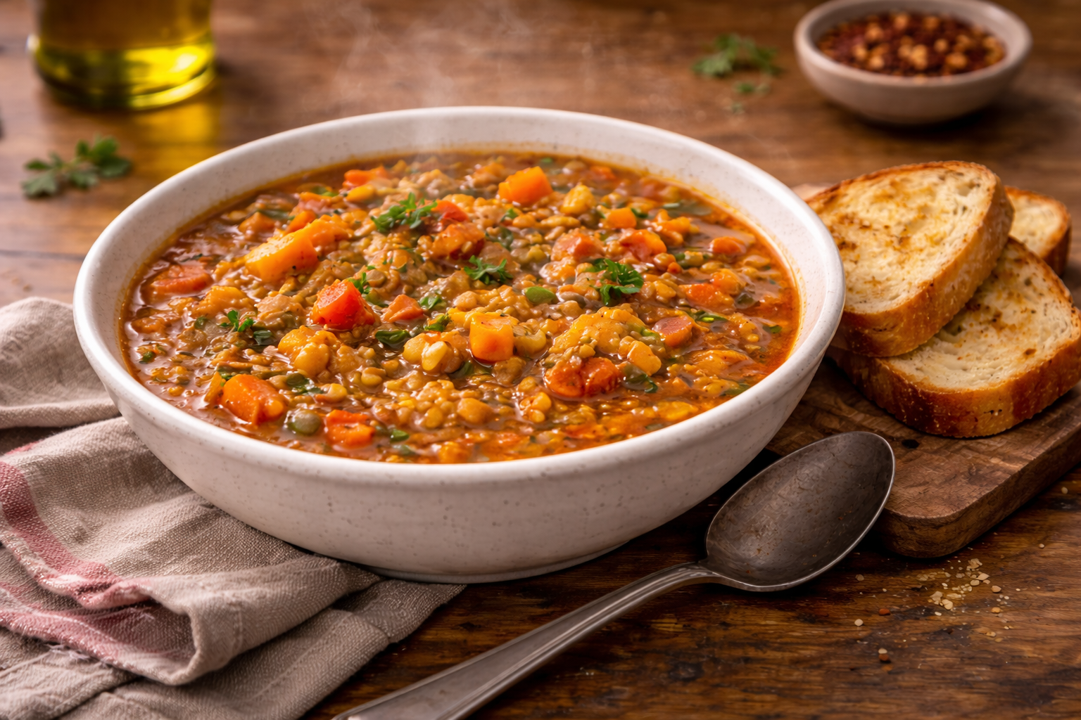 Il y a des soirs où le corps ne demande pas du spectaculaire. Il demande du chaud. Du simple. Du rassurant. Quelque chose qui sent la cuisine honnête, pas la stratégie marketing. Et c’est exactement là que la soupe-repas de lentilles et riz entre en scène comme une vieille alliée qu’on aurait eu tort d’oublier. Ce n’est pas une recette tapageuse. C’est mieux que ça. C’est une recette stable. Fiable. Nourrissante. Le genre de plat qui coûte peu, donne beaucoup, puis laisse derrière lui une sensation de soulagement presque physique.