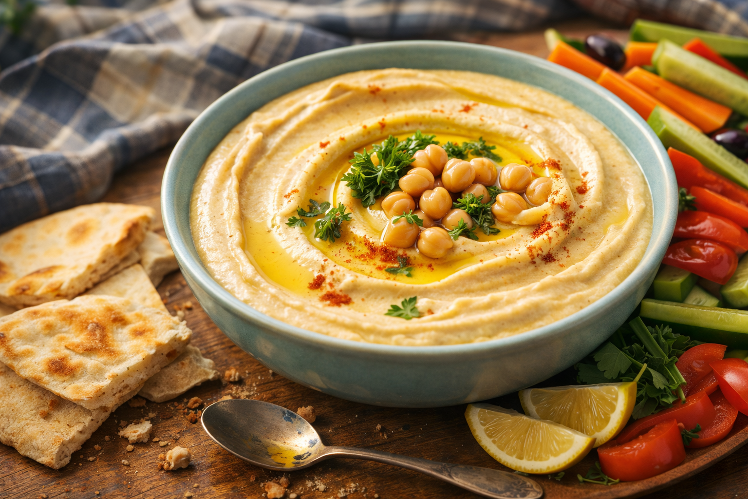Un bon hummus n’a rien à voir avec certaines versions du commerce qui ressemblent à une pâte beige en crise existentielle. Le vrai hummus doit être lisse, soyeux, citronné, légèrement aillé, puis assez souple pour donner envie d’en manger avec tout : pita, crudités, sandwichs, wraps, bols, craquelins, ou simplement à la cuillère quand la journée t’a déjà tout pris sauf ton besoin de sel et de réconfort.