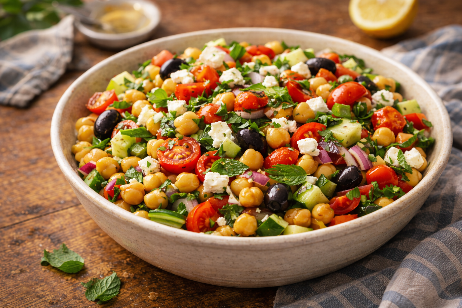 La salade méditerranéenne de pois chiches est la recette parfaite pour rappeler à ton cerveau qu’un lunch maison peut encore avoir de l’allure. Pas besoin d’une facture absurde, pas besoin d’une salade achetée qui coûte le prix d’une petite crise de nerfs. Avec des pois chiches bien cuits, quelques légumes, des herbes et une vinaigrette vive, tu obtiens quelque chose de frais, coloré, nourrissant puis très rentable.