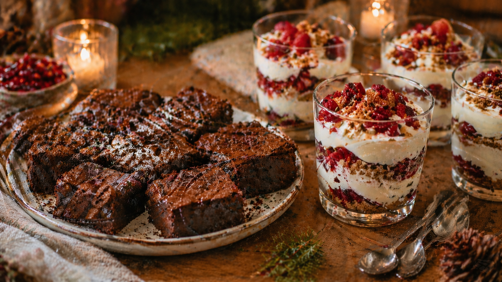 C’est probablement pour ça que je défends autant l’idée du duo dessert. Un dessert riche. Un dessert léger. Pas huit. Pas douze. Deux bons choix qui se complètent puis qui laissent un vrai souvenir. Le brownie ou un gâteau dense apporte la profondeur, le côté réconfortant, presque décadent. La bagatelle, le trifle ou un dessert en couches apporte la fraîcheur, la lumière, la petite finale plus aérienne. Ensemble, ça crée un équilibre. Et un réveillon élégant, au fond, c’est souvent juste ça : de l’équilibre bien senti.