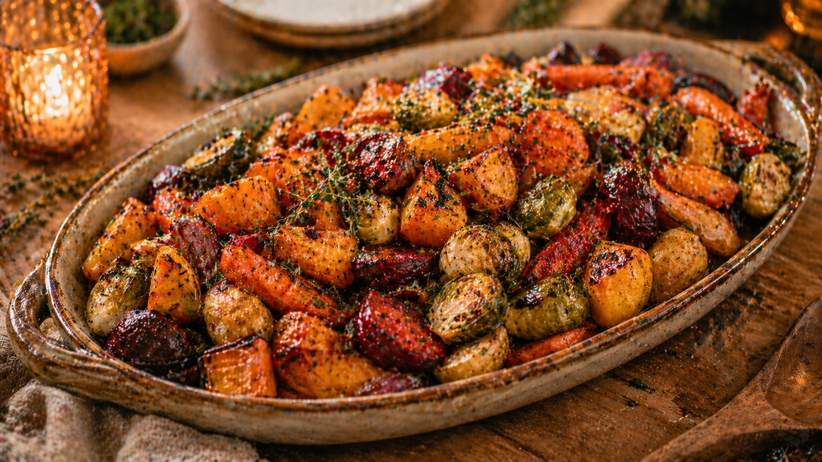 Le problème, c’est que beaucoup de gens les traitent comme un accompagnement secondaire, alors qu’ils devraient être pensés comme un pilier visuel du repas. On les coupe trop petits, on les noie dans l’huile, on les brasse trop, on les cuit trop bas, puis on se retrouve avec des légumes mous, tristes, qui ont l’air de s’excuser d’exister à côté de la volaille. Alors qu’en réalité, de beaux légumes rôtis bien faits peuvent faire paraître tout le réveillon plus haut de gamme.