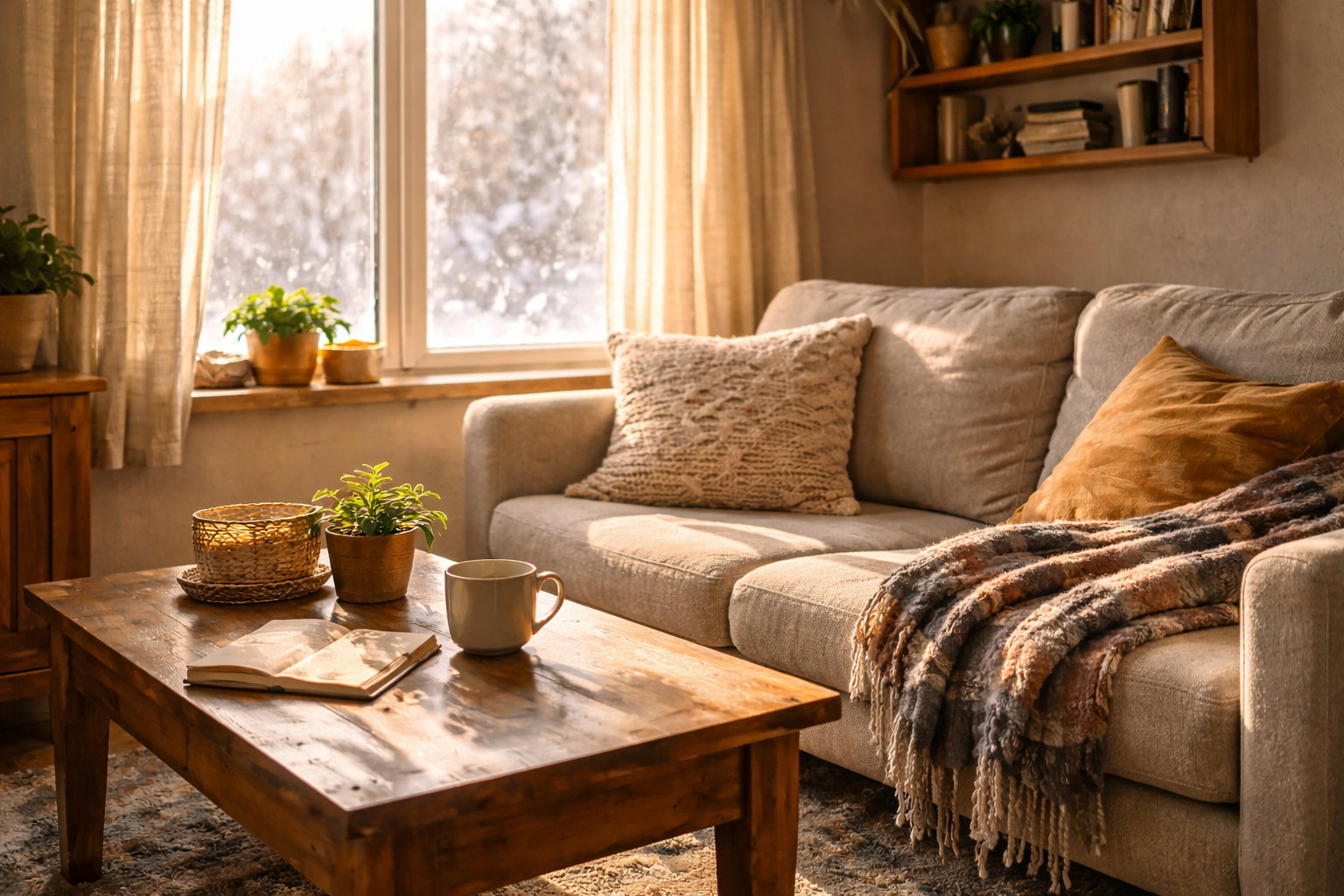 Observe quelles pièces reçoivent le plus de soleil entre la fin de matinée et le milieu d’après-midi. Ce sont celles-là qu’il faut “ouvrir” au maximum. Libère le rebord des fenêtres, tasse les rideaux épais durant les heures utiles, puis referme tout avant que la température chute. Cette alternance simple entre captation et protection te donne une habitude gratuite, intelligente et très facile à maintenir jusqu’au printemps.