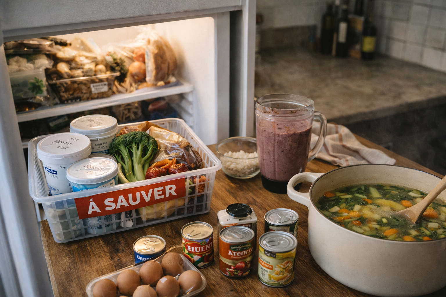 Installe un “bac à sauver” visible dans ton frigo pour regrouper les aliments à utiliser vite. Une fois par semaine, fais un repas sauvetage: soupe, sauté, bol de riz, muffins, compote, sauce, pain doré, gratin ou smoothie. Ce simple contenant réduit énormément les oublis et transforme les fins de cycle en repas réels. Quand tout ce qui presse se retrouve au même endroit, tu gaspilles moins parce que tu vois enfin ce que tu dois prioriser.