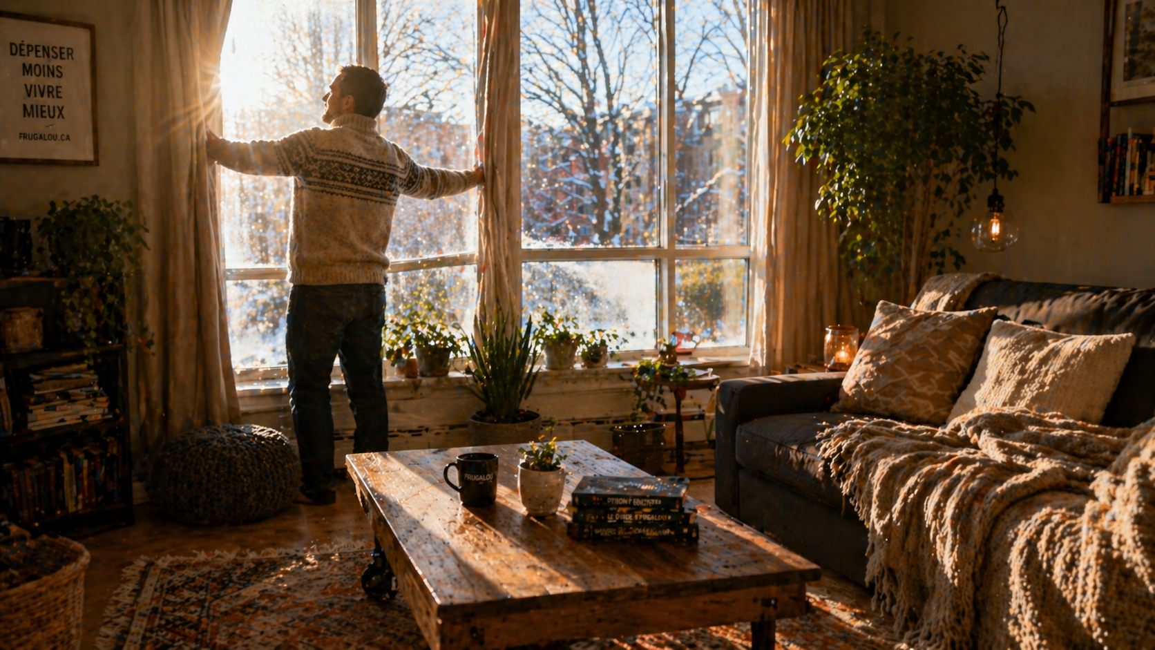 La vraie frugalité moderne, surtout en automne et en hiver au Québec, c’est beaucoup plus intelligent que ça. C’est apprendre à mieux habiter ton espace. Chauffer les bonnes pièces au bon moment. Bloquer les pertes avant de payer pour chauffer le quartier. Préparer ton appart ou ta maison avant les grands froids. Utiliser tes rideaux, tes tapis, tes couvertures, ton congélateur, ton four, ton épicerie et ton gros bon sens comme une vraie stratégie anti-gaspillage.