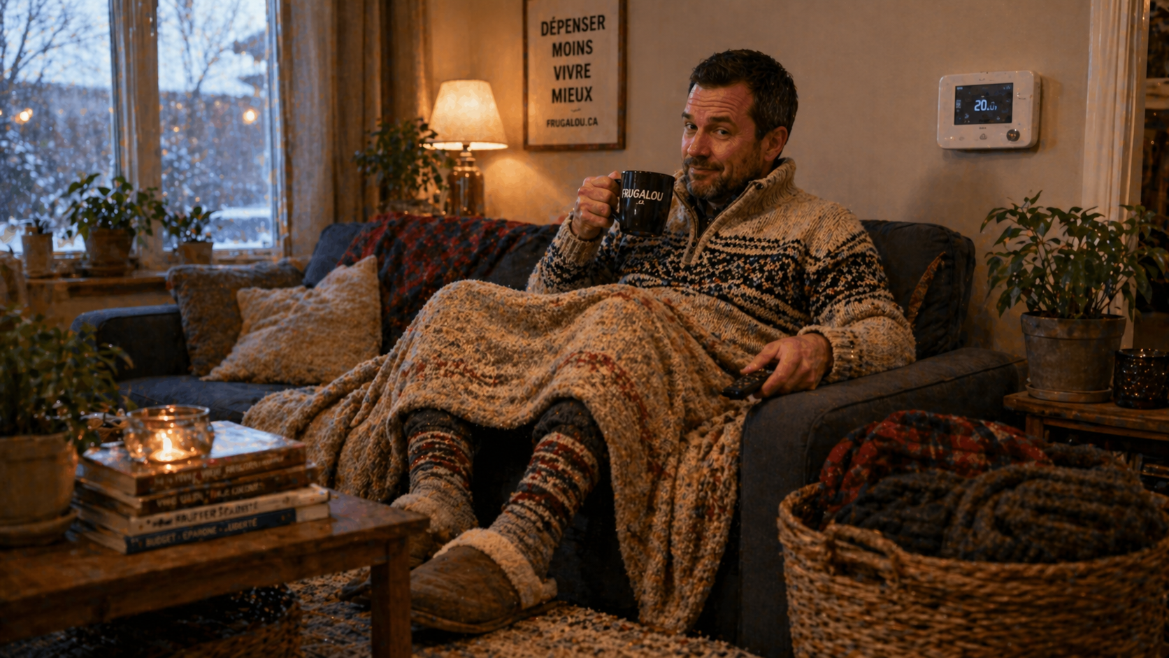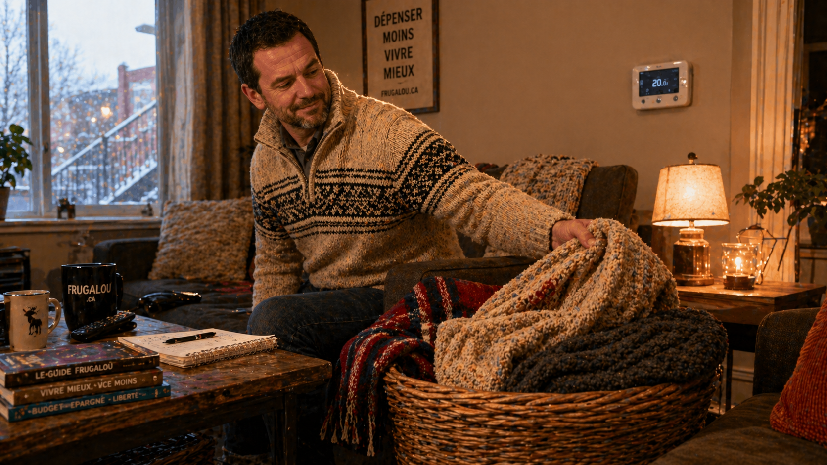 Prépare un vrai “kit salon d’hiver” visible et facile à attraper : chandail chaud, bas épais, pantoufles et un bac de couvertures chaudes près du divan. Pas dans le fond d’un garde-robe où personne ne va jamais. Directement dans le salon, là où le froid te pogne pendant que tu regardes la télé. Comme Léa le dit souvent, une bonne habitude frugale doit être plus facile que la mauvaise. Si la couverture est plus proche que le thermostat, tu viens déjà de gagner une petite bataille contre Hydro.