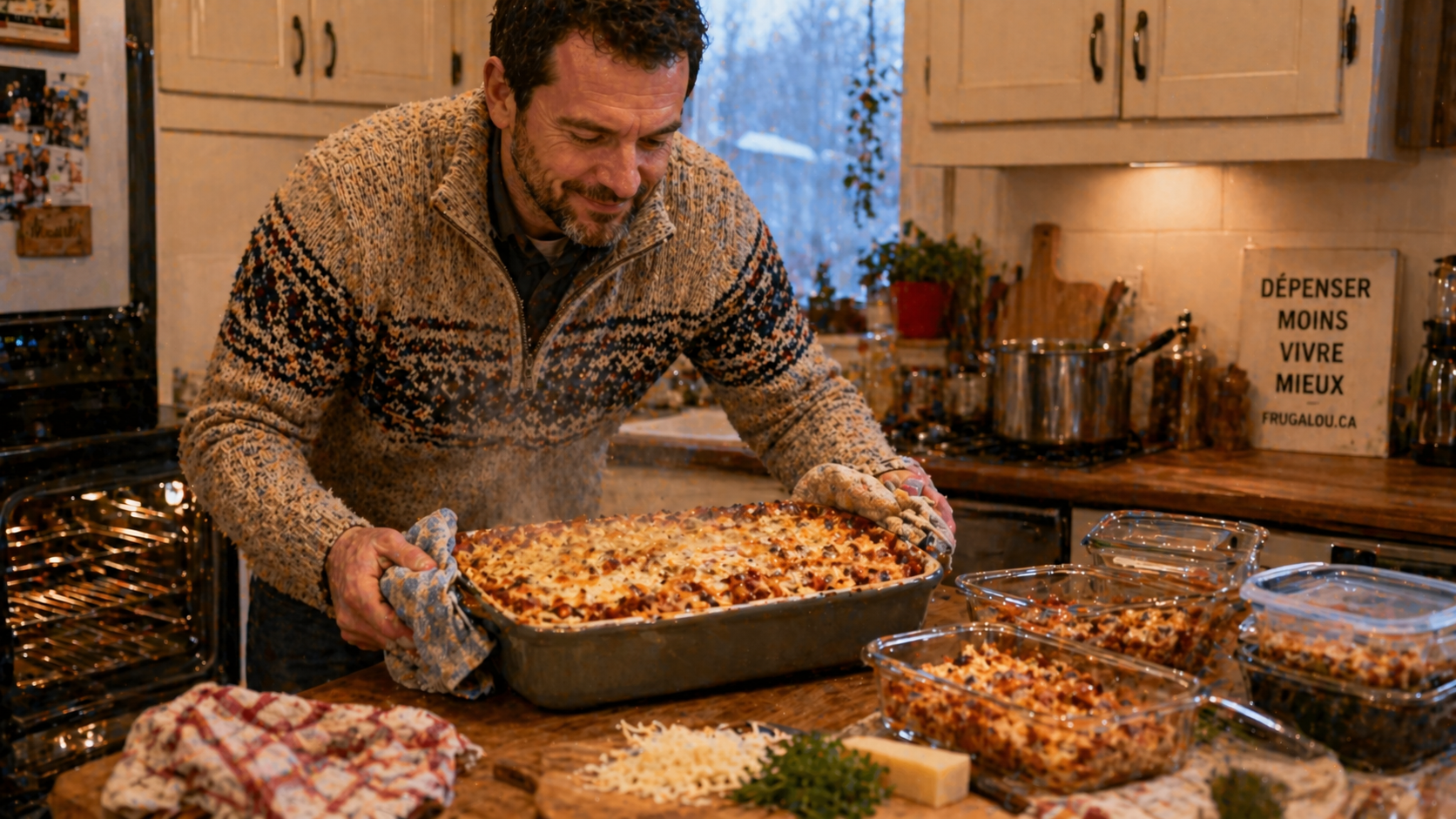 Et c’est ça que j’aime dans sa façon de voir la frugalité. Ce n’est jamais triste. Ce n’est jamais “mange sec, chauffe moins, souris quand même”. C’est plutôt : tant qu’à utiliser le four, fais quelque chose qui vaut la peine. Double la recette. Garde des portions. Prépare un lunch. Congèle. Fais travailler ton énergie une fois, mais récolte plusieurs fois. Là, ton four devient rentable, pas juste bruyant et chaud.L’hiver, une cuisine active peut t’éviter beaucoup de dépenses réflexes. Moins de livraison. Moins de restos de fatigue. Moins de collations achetées trop cher. Plus de restants. Plus de réconfort. Plus de contrôle.