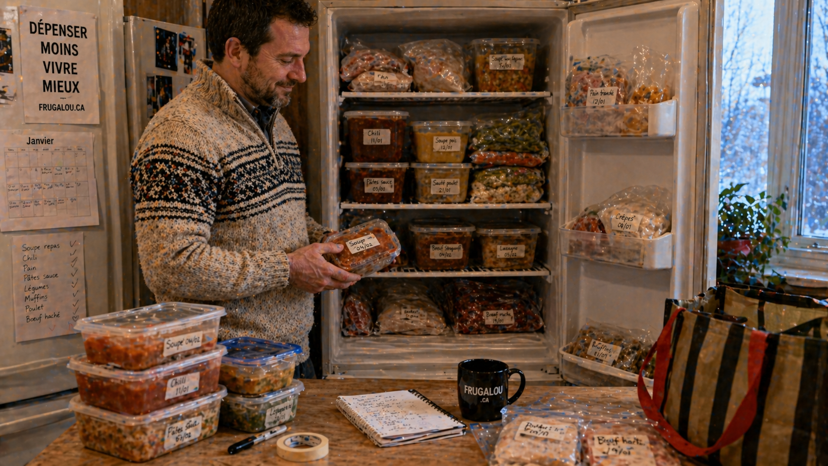 Léa insiste toujours là-dessus : la règle FRUGALOU, c’est un pour maintenant, deux pour plus tard quand le prix est vraiment bon. Un stockpile, ce n’est pas un tas de produits oubliés, c’est une réserve qui sert. Elle te dirait de dater les portions, penser en repas complets et noter ce qui entre. Moi, je traduis ça autrement : si tu ne sais plus ce qu’il y a dedans, ce n’est plus un congélateur, c’est une fouille archéologique. Le but, c’est simple : acheter bas, manger maintenant, garder deux portions pour plus tard, gaspiller moins, commander moins souvent et traverser les semaines froides avec une marge de manœuvre. Parce qu’en février, le vrai luxe, ce n’est pas un souper compliqué. C’est d’avoir déjà quelque chose de bon qui t’attend.