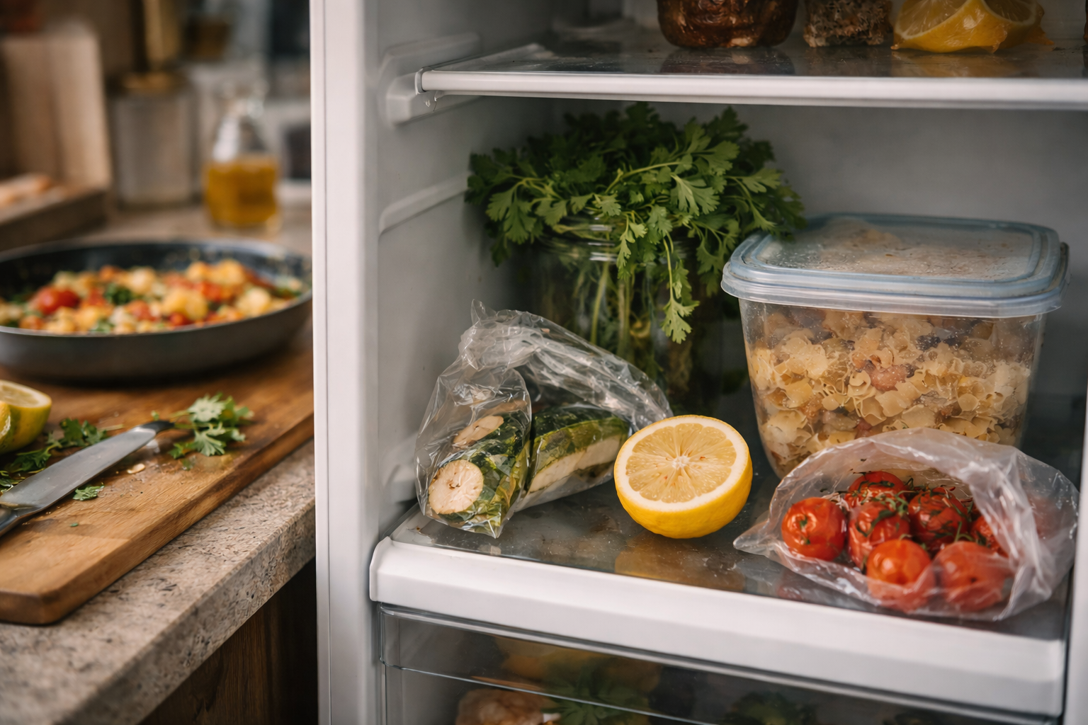 On achète des légumes avec de bonnes intentions. On pense cuisiner “dans la semaine”. On garde des restes dans des plats opaques qui finissent par ressembler à des indices de scène de crime. Puis arrive le moment où on ouvre le frigo, on voit trop de choses en fin de vie, on se sent dépassé… et on commande du resto. La boucle parfaite.