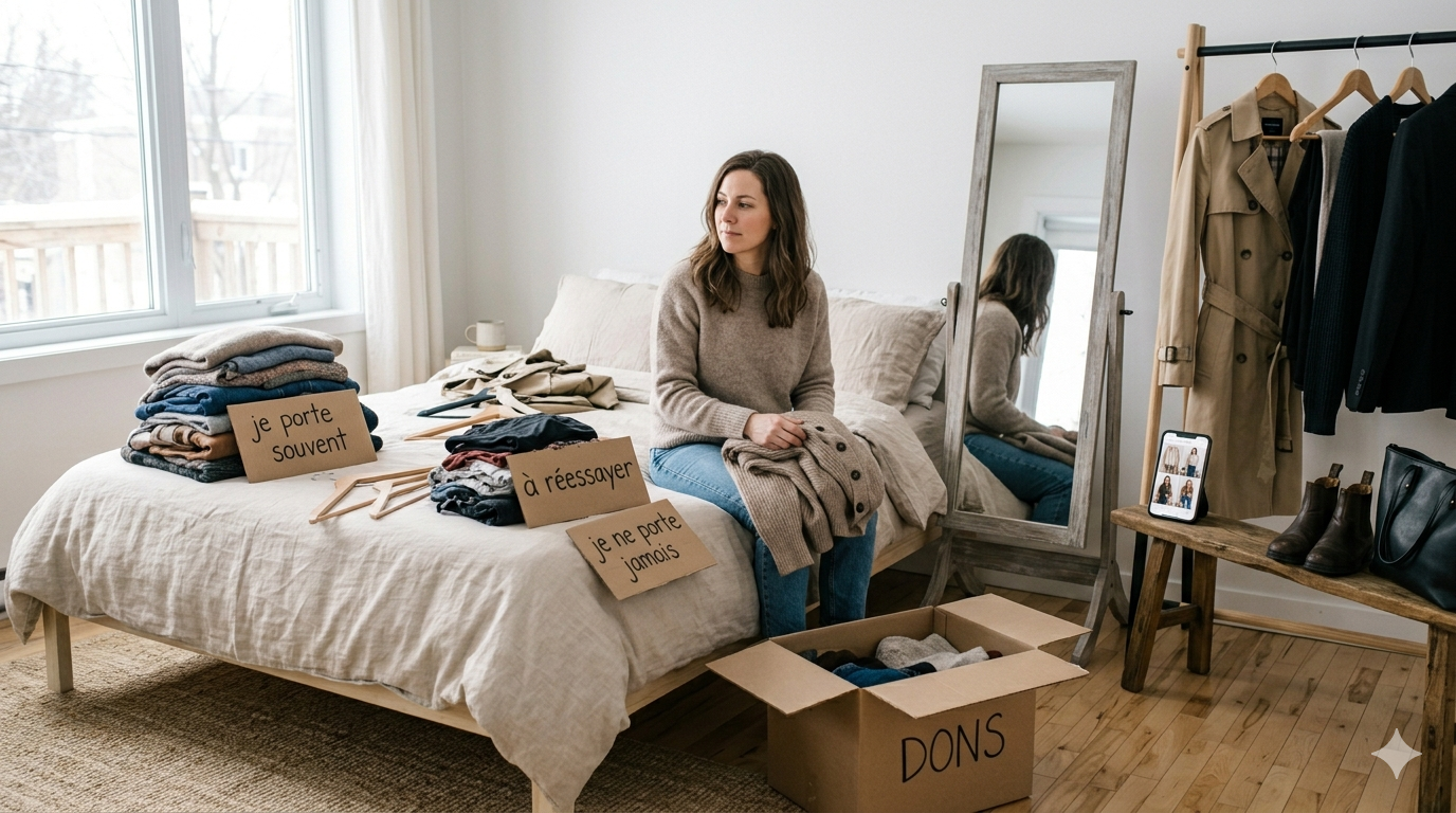 Quand tu réfléchis à un achat, pose-toi la question la plus québécoise possible : “Est-ce que cette pièce fonctionne dans ma vraie vie?” Transport, pluie, gadoue, superpositions, lavage, rythme de semaine, confort. Si la réponse est seulement oui sur Pinterest, ce n’est pas un bon achat. Le frugal chic ne cherche pas à te transformer en personnage. Il cherche à rendre ton quotidien plus stylé, plus simple et beaucoup moins cher à maintenir.