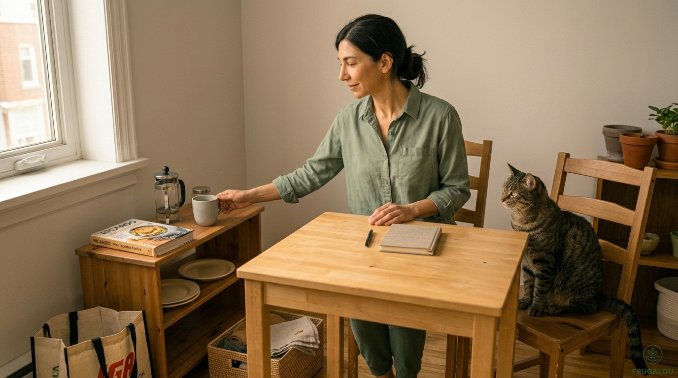 Cet article n’est pas là pour te culpabiliser. Il est là pour te redonner un peu de souffle. Pour te rappeler que vivre mieux avec moins, ce n’est pas une punition. C’est souvent une réparation. Une manière de retrouver quelque chose qu’on avait laissé se faire écraser sous les paiements, les habitudes automatiques, la fatigue puis le bruit : la paix, la simplicité, le goût de cuisiner, la fierté d’être plus solide, puis ce luxe devenu rare qu’on appelle la tranquillité. Ici, chez FRUGALOU, on ne cherche pas à t’impressionner. On cherche à t’aider pour vrai.