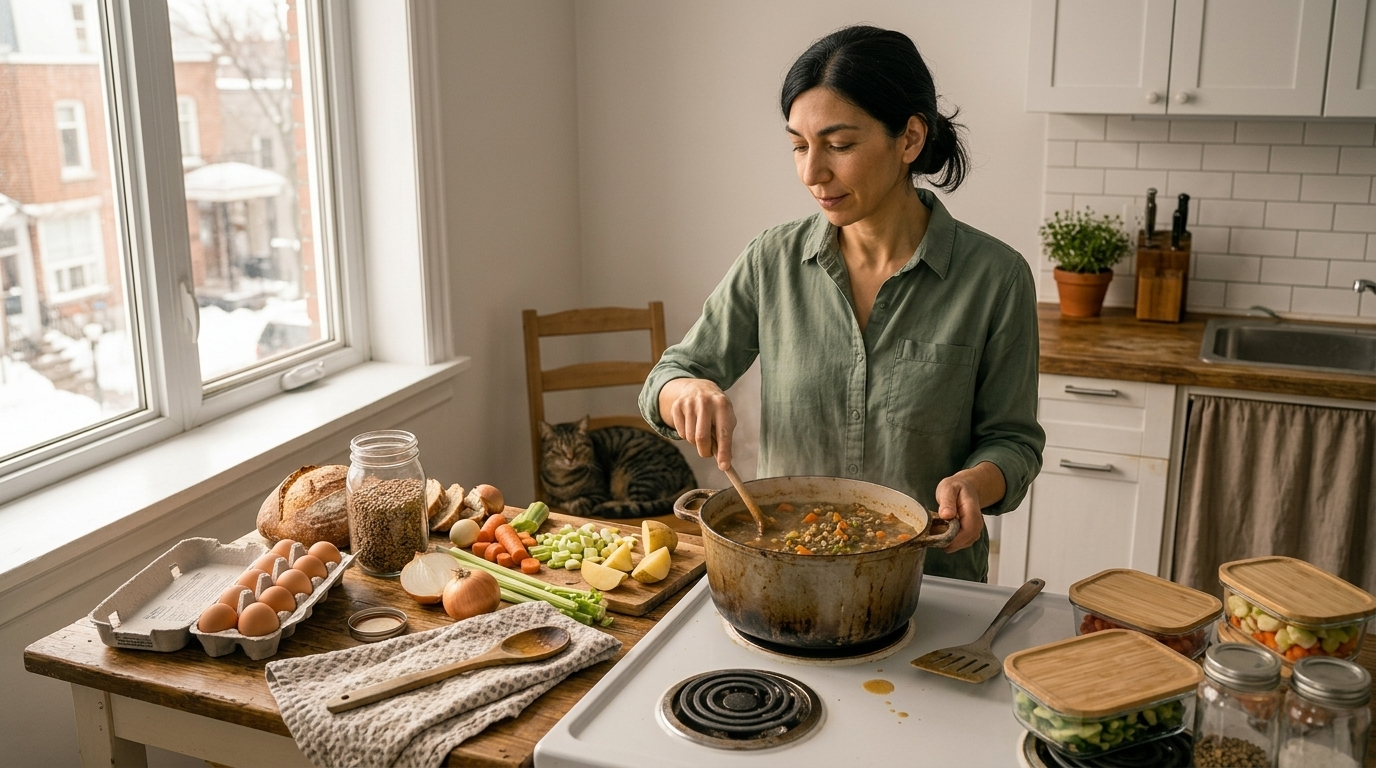 Quand tu sais cuisiner quelques bases, utiliser les restes, congeler intelligemment, portionner, transformer un surplus, improviser avec des ingrédients simples, tu te donnes une marge immense. Pas juste financière. Émotionnelle aussi. Parce qu’une cuisine bien pensée calme énormément de chaos. Elle évite des soupers improvisés dans la panique. Elle réduit le gaspillage. Elle rend les semaines moins cassantes. Elle te permet de rebondir quand l’énergie baisse, quand un imprévu débarque ou quand le mois coûte plus cher que prévu.