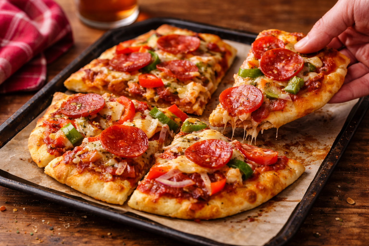 Cette naanza-là, c’est le grand classique de semaine qui réconcilie tout le monde autour de la table. Martin l’aime parce qu’elle ne demande aucune explication et aucun effort mental inutile. Ça goûte la pizza, la vraie, celle qu’on a envie de manger quand la journée a été longue. Léa l’aime parce qu’elle peut la rendre bien meilleure simplement avec de bons réflexes d’assaisonnement. Trop souvent, les versions maison de pepperoni-poivron manquent de relief. Ici, on corrige ça. La sauce se travaille avec de l’origan, de l’ail en poudre, une pincée d’oignon en poudre et un peu de poivre noir. Le poivron, tranché finement, devient plus doux au four sans détremper la base. Le pepperoni, lui, libère son gras parfumé et vient assaisonner le fromage pendant la cuisson. Une petite touche de paprika fumé ou de chili broyé vient compléter l’ensemble et donne cette impression de pizza de comptoir bien faite, savoureuse, chaude, rassurante.