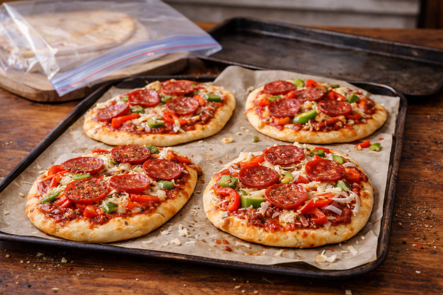 Comme dans les pizzerias italiennes, le secret ici, c’est une garniture légère et bien maîtrisée. Coupe le poivron très fin et éponge-le pour éviter qu’il relâche trop d’eau. Pour le meal prep, monte les naanzas sur une plaque recouverte de papier parchemin, puis congèle-les à plat 1 à 2 heures. Une fois fermes, transfère-les dans un sac en séparant avec du parchemin. Pour cuire, mets-les directement du congélo au four à 425 à 450 °F sur une plaque déjà chaude, 10 à 13 minutes, jusqu’à dessous croustillant et fromage bien gratiné.